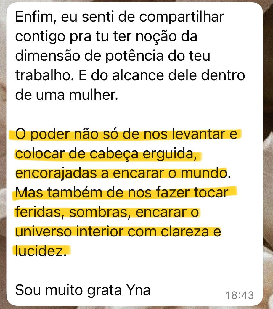 Vou estar com você nesse dia inteiro, guiando cada prática, conduzindo a roda, acompanhando cada mulher no processo de se colocar no mundo com